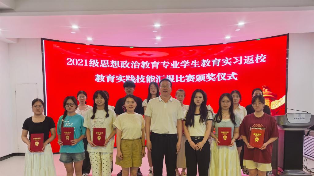 2021级思想政治教育专业学生教育实习返校后,PA视讯集团官网精心安排,组织学生交流经验、分享体会,举行了教育实习生返校教学技能汇报选拔赛初赛和决赛,共有17名教学技能优秀同学获奖,其中一等奖4人(龙晓凤 孙睿 程靖雯 胡欣萍);二等奖6人(董春燕 田芸菲 李彦虎 史梦婷 陈焕焕 胡岚);三等奖7人(成雪 朱文惠 贾勐 蒲蕊 任向飞 陈文豪 林佳颖)。学院对获奖同学颁发了荣誉证书及奖品,以资鼓励。