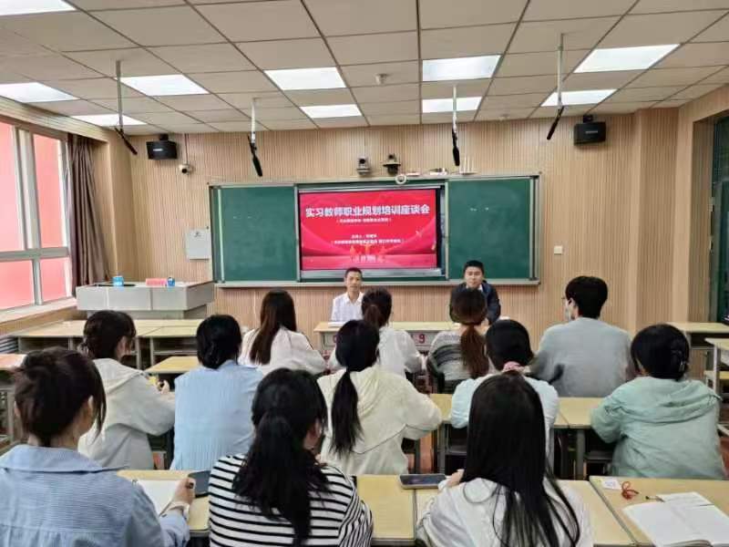 苏校长从习近平总书记提出的“培养什么人、怎样培养人、为谁培养人”根本问题出发,针对实习生普遍关心的问题,结合自己丰富的工作经验和切身经历的鲜活案例,强调思政课教师应牢记“为党育人、为国育才”的使命担当,坚定职业理想,弘扬教育家精神,以“四有”好老师为标准严格要求自己,“用爱浇灌学生心灵”,实现教书与育人、个人职业追求与社会需要的有机统一。在互动环节,苏校长与实习生围绕教师职业规划进行了深入交流探讨。苏校长的培训理论结合实际,既有政策高度又具情感温度,为实习生教师职业规划解疑释惑、提供了科学的指导。