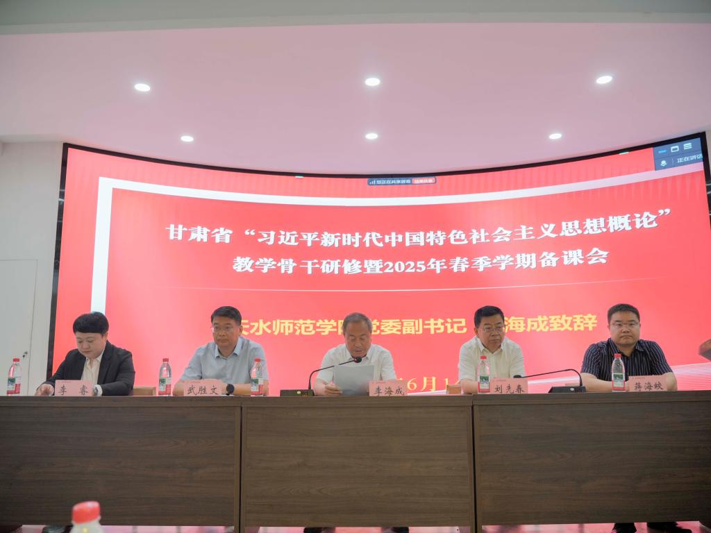 6月14日,由中共甘肃省委教育工作委员会、甘肃省教育厅指导,甘肃省“习近平新时代中国特色社会主义思想概论”分教学指导委员会、全国高校思政课“手拉手”集体备课中心(兰州大学)主办,全国高校思政课名师工作室(兰州大学)、天水师范学院PA视讯集团官网、甘肃省思想政治理论课余明远名师工作室承办的甘肃省“习近平新时代中国特色社会主义思想概论”教学骨干研修暨2025年春季学期备课会在天水师范学院举办。来自中国人民大学、兰州大学、西北师范大学、兰州交通大学等高校的专家学者及骨干教师代表齐聚一堂,共同研讨新时代思政课教学创新与发展。