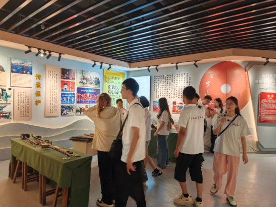 会宁是一片浸润着红色基因的土地,而文化馆正是串联起红色记忆与传统文化的重要纽带。同学们步入非物质文化遗产展厅,在讲解员的带领下,一边回溯会宁作为红军长征胜利会师地的峥嵘岁月,一边探寻非遗技艺中蕴含的红色密码。国家级非遗会宁剪纸里,既有对农耕生活的描绘,更有以长征故事为题材的经典作品,剪刀游走间,红色历史被定格成永恒的艺术;省级非遗会宁皮影戏《大墩梁》片段,更是以激昂的唱腔、铿锵的鼓点,将那段波澜壮阔、用生命守护阵地的历史鲜活呈现。在光影流转中诉说着不屈的斗争精神。红色精神与非遗技艺在此碰撞,让大学生们深刻体会到:传统文化不仅是民族的根脉,更是红色精神的鲜活载体。