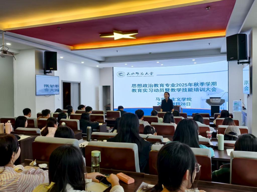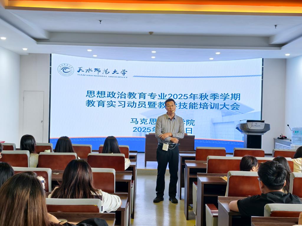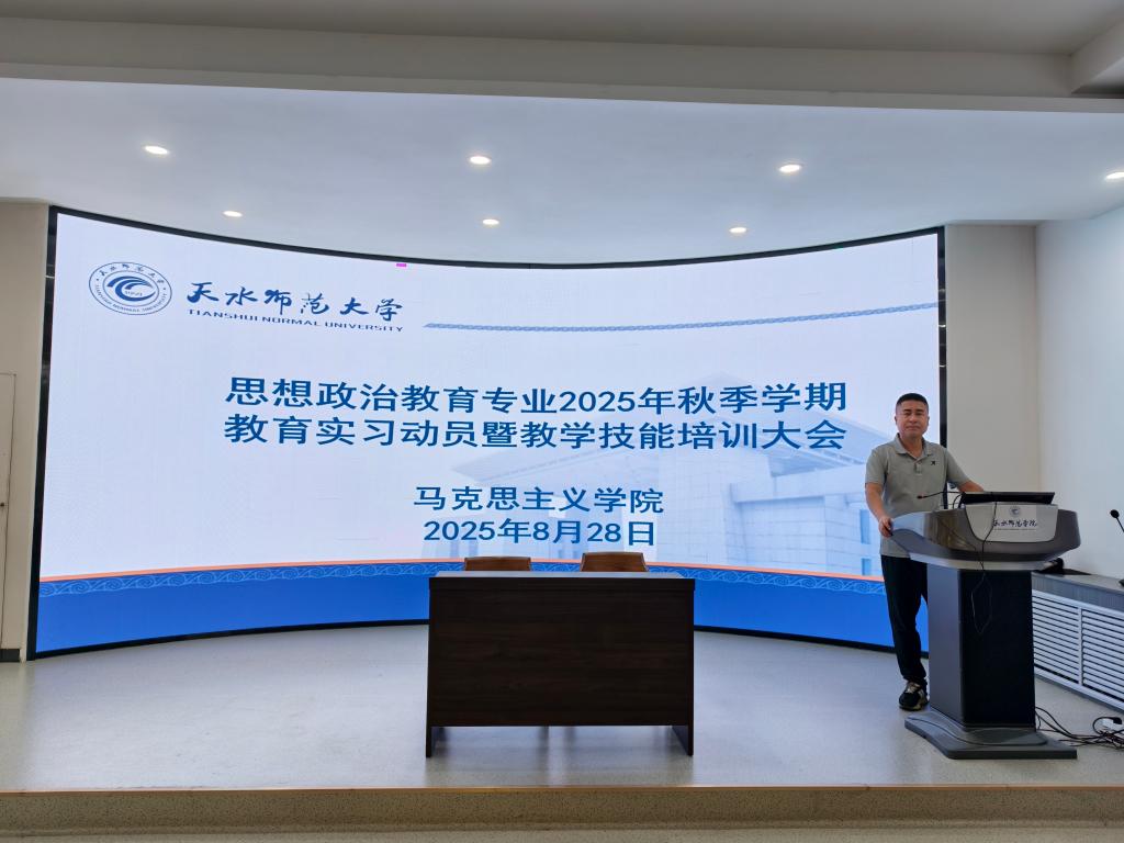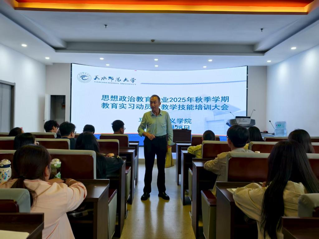 为扎实推动2025年秋季学期2022级思想政治教育专业教育实习工作有序高效开展,切实提升学生的教育教学实践能力。8月28日至29日,PA视讯集团官网在红色讲堂隆重举行教育实习动员暨教学技能培训大会。学院党委书记陈俊亮、院长刘建军、党委副书记李海涛出席会议,2025年秋季学期全体实习生参加。会议由思政系主任吴亚辉主持。