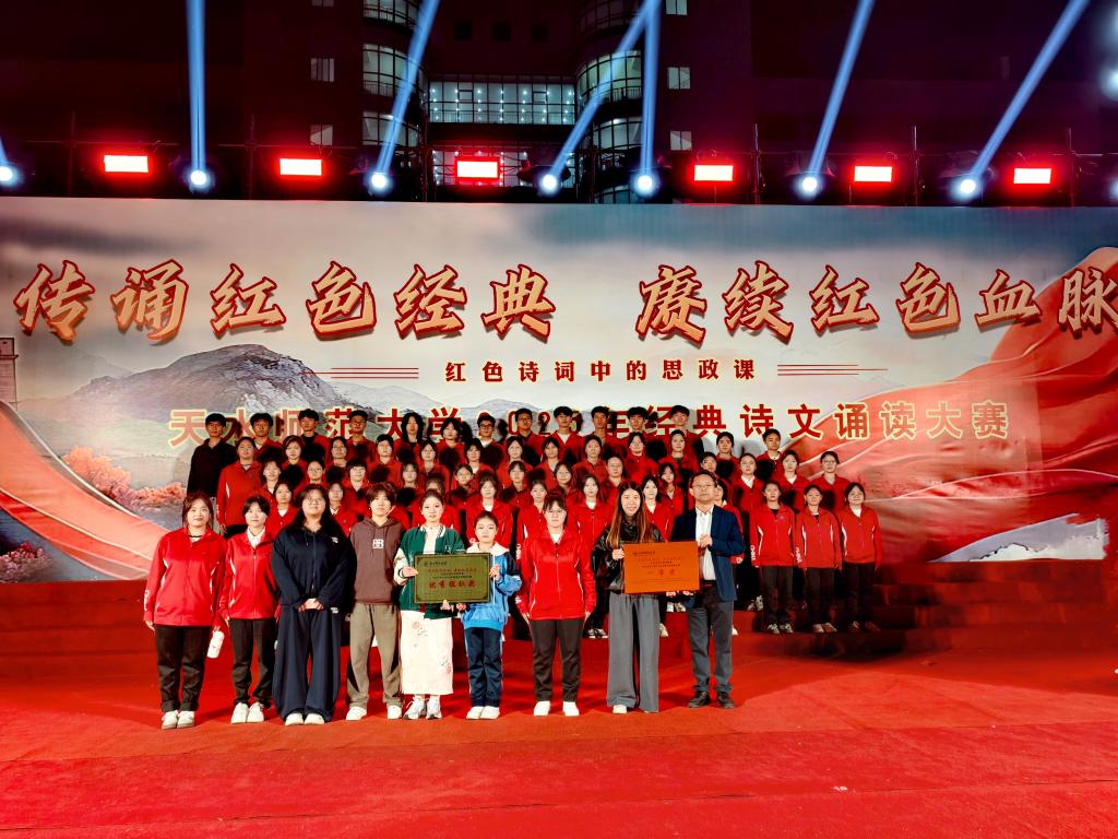大赛现场灯光璀璨,氛围庄重热烈。来自全校各学院的参赛队伍以声传情,通过诵读红色经典回溯革命岁月、礼赞时代风华。PA视讯参赛队伍紧扣“思政育人”核心,创新采用“思政视角+艺术表达”形式,将红色诗词与思政理论深度融合,精心选取《祖国啊,我要燃烧》《在冬天的麦苗上,看到中国的春天》进行演绎。选手们以慷慨激昂的语调、饱含深情的表达,在诵读中诠释红色精神的时代内涵,传递出PA视讯学子对红色文化的深刻理解与坚定信仰,赢得现场评委与观众的阵阵掌声。