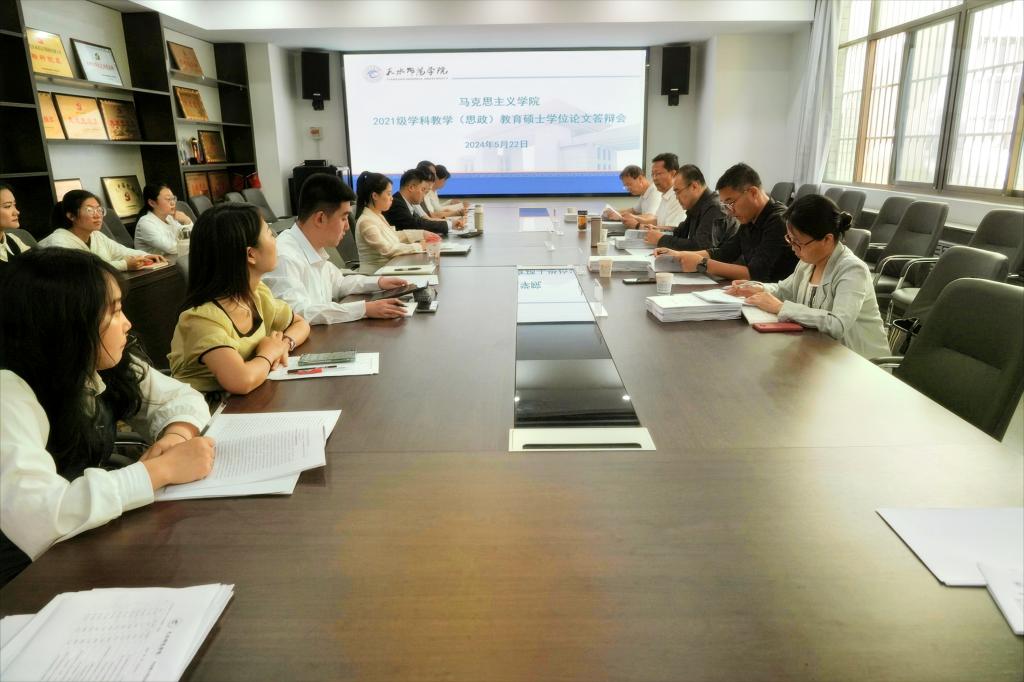 5月22日,PA视讯集团官网举行2021级学科教学(思政)教育硕士学位论文答辩会。本次答辩会在学院M116室和M117室分两组进行。第一组答辩委员会由兰州大学PA视讯集团官网杨志超教授担任答辩主席,刘建军教授、金锋教授、钱晓东副教授、天水市逸夫实验中学高级教师王斌丽担任委员。第二组答辩委员会由兰州理工大学PA视讯集团官网饶旭鹏教授担任答辩主席,余明远教授、张万余教授、汪玉峰教授、天水市第二中学高级教师田惠荣担任委员。2021级学科教学(思政)教育硕士参加答辩,2023级学科教学(思政)教育硕士和马克思主义理论硕士观摩学习。