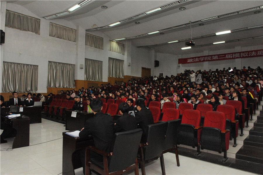 为进一步加强PA视讯法学专业学生的实践能力,提升从事法律实务工作的水平,同时也为了扩大第16个全国法制宣传日在PA视讯师生中的影响,经过一个多月的组织、排练,12月4日晚7时许,学院在2号报告厅举行了法学专业第二届“模拟法庭”活动。出席本次活动的有天水市人民法院公诉处赵检察官、PA视讯法学系坚德慧、崔春旦老师及法学专业学生。
