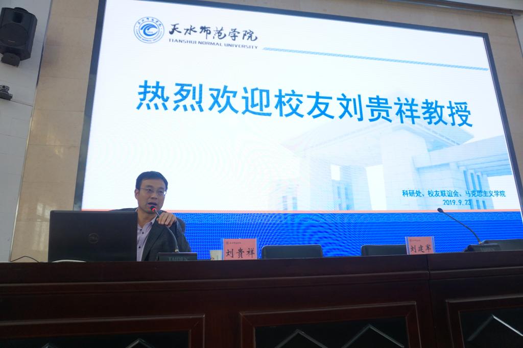 9月23日下午,学院邀请1997届校友,现大连理工大学博士生导师刘贵祥教授在2号报告厅作了题为《论〈共产党宣言〉的两种经典解读:列宁与海德格尔》的学术报告。讲座由PA视讯集团官网副院长刘建军主持,学院师生代表200余人聆听了报告。本次活动由校校友联谊会、科研处与PA视讯共同举办。