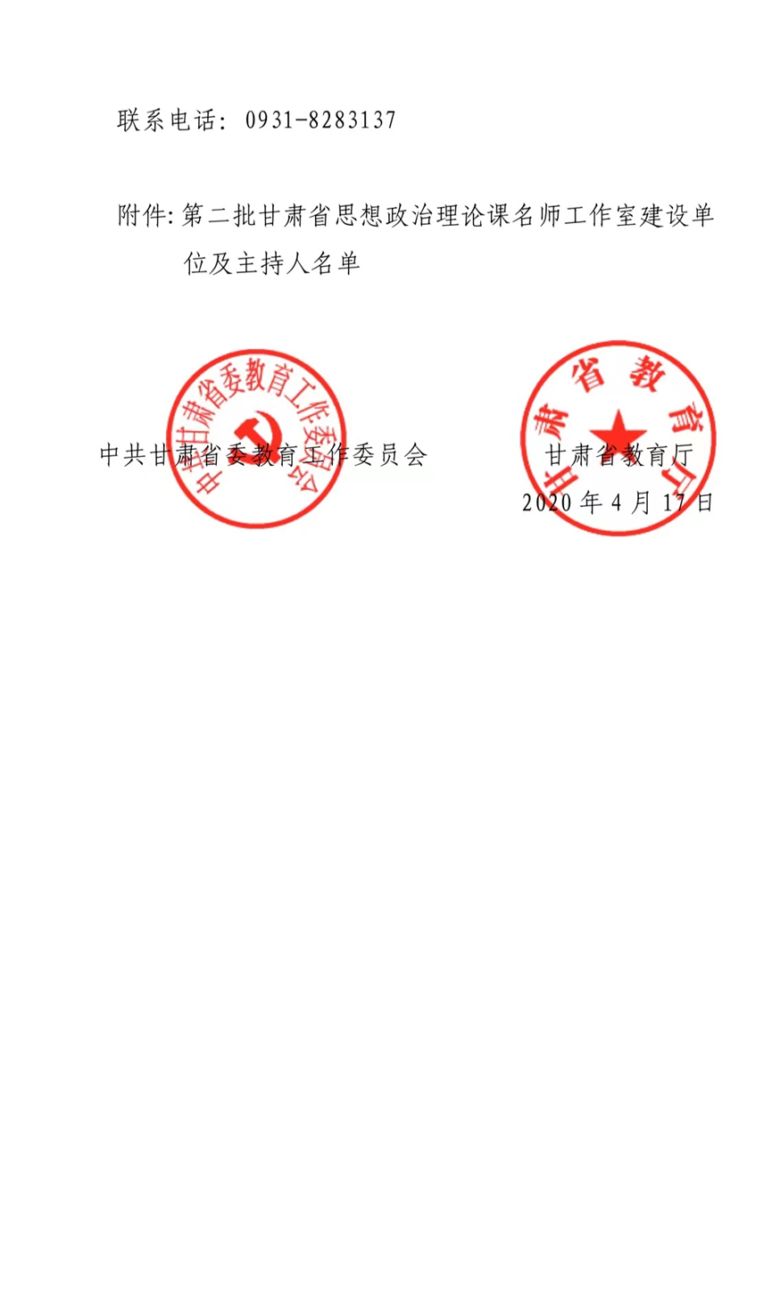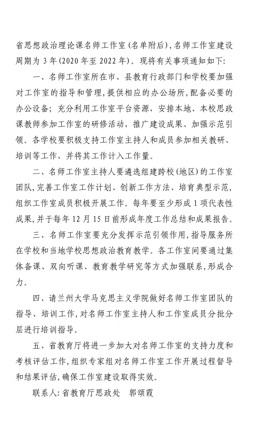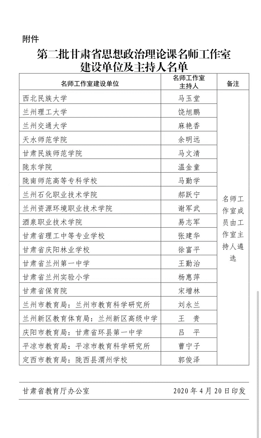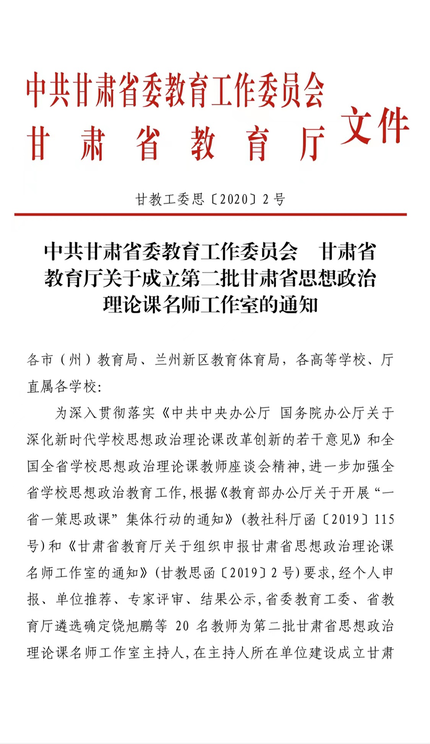 甘肃省思想政治理论课余明远名师工作室获批文件