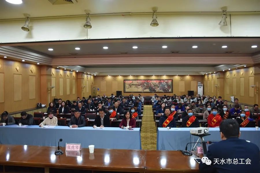 市总工会党组成员、副主席张虎琴主持报告会,市总工会党组成员、经审会主任何付忠,党组成员、副主席衡俊强,部分企业工会主席,一线职工,驻秦州区部分劳模、秦州工匠共120余人参加宣讲报告会。
