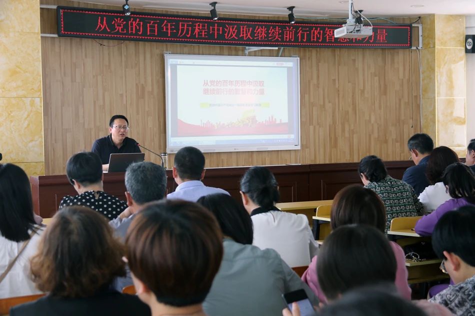 在礼县实验小学,天水师范学院PA视讯集团官网余明远教授,面向礼县实验小学思政课专兼职教师以及全体党员,做了题为“从党的百年历程中汲取继续前行的智慧和力量”的学术报告。报告以党的理论探索史和非凡奋斗史为逻辑体系,阐释开展党史学习教育的重大意义、党史学习的重点内容、开展党史学习教育的工作要求,着重针对小学思政课教师的困惑和困难,剖析了根据小学生思想实际创新性教学,引导思政课教师在党史学习教育中明理、增信、崇德、力行,倡导其他教师充分挖掘和运用课程思政资源,构建思政课程与课程思政同向同行、同频共振的良好格局。