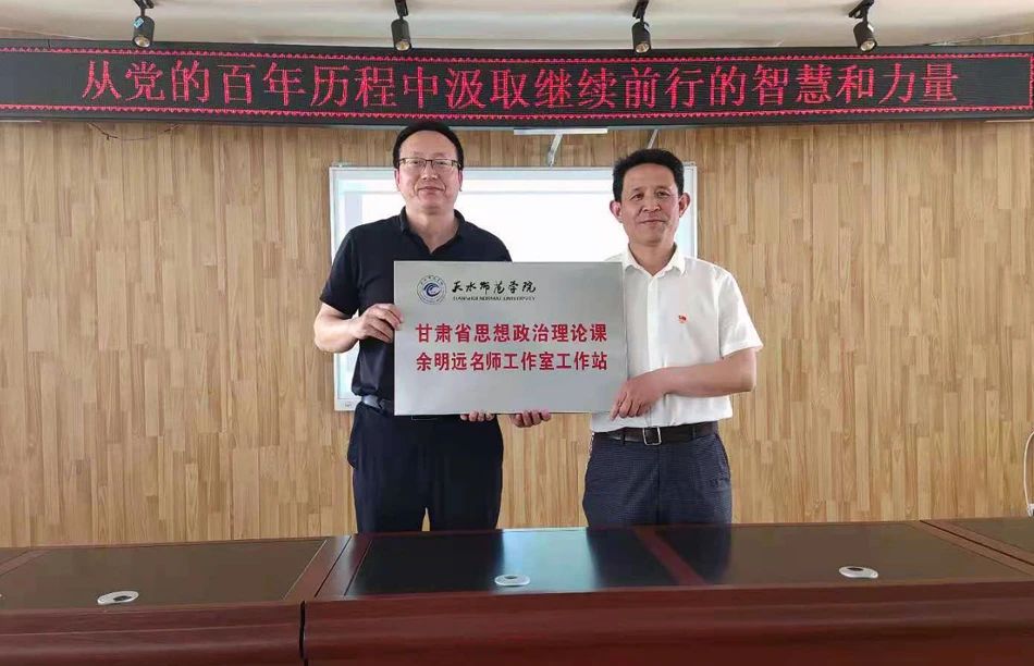 为常态化发挥甘肃省思政课名师工作室的示范引领作用,余明远名师工作室向礼县实验小学授牌,成立甘肃省思想政治理论课余明远名师工作室工作站。至此,余明远名师工作室已经建立起涵盖小学(礼县实验小学)、初中(清水县第三中学、第八中学)、高中(哈达铺中学)各学段的工作站体系,计划就思想政治理论课课堂教学改革、实践教学基地建设、红色文化传承等方面进行深度合作。