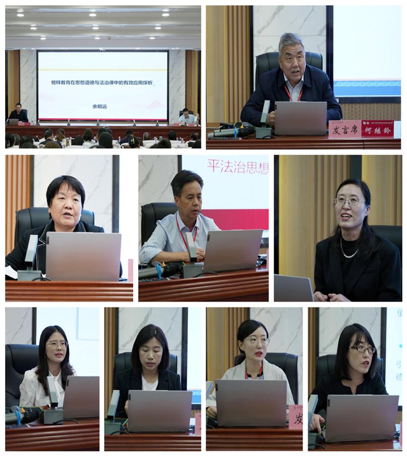 会议研讨交流和教学展示阶段分别由全国思政课名师工作室(兰州理工大学)主持人、甘肃省“思想道德与法治”分教指委副主任兼秘书长、兰州理工大学PA视讯集团官网院长饶旭鹏教授,甘肃省思政课余明远名师工作室主持人、天水师范学院PA视讯集团官网副院长余明远教授主持。西北师范大学何继龄教授、甘肃农业职业技术学院副校长马万锋副教授、兰州理工大学德法教学部副主任高瑛副教授、兰州城市学院王子龙教授、天水师范学院余明远教授、甘肃政法大学乔娟副教授、甘肃财贸职业学院寇明英副教授、兰州石化职业技术大学钱镜伊副教授、西北师范大学耿春晓讲师、甘肃农业大学陆茸讲师、兰州信息科技学院杨燕讲师分别进行了学术交流。