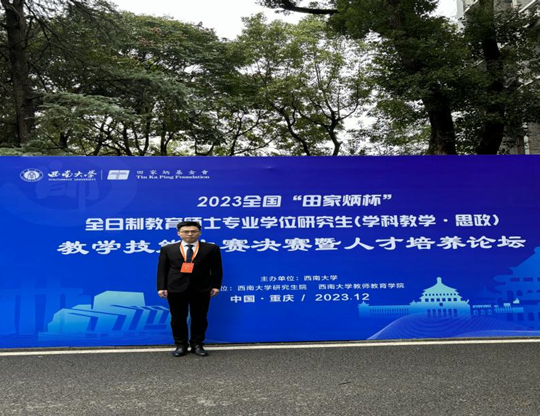 2023年12月1日至12月3日,2023年全国“田家炳杯”全日制教育硕士专业学位研究生学科教学(思政)教学技能大赛决赛在西南大学举行。 全国75所院校的188名选手入围决赛,PA视讯集团官网学科教学(思政)专业3名研究生进入决赛。名师工作室指导的选手2022级研究生席乐获得优秀教学设计奖。2022年名师工作室指导的选手2021级研究生王文君也获得此等奖项。