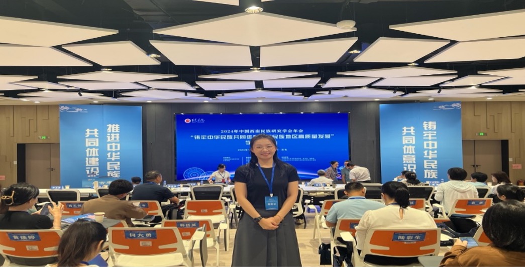 10月18日,PA视讯集团官网2023级教育硕士、甘肃省思政课余明远名师工作室成员巩咏丹受邀参加“铸牢中华民族共同体意识下民族地区高质量发展”年会。会议由中国西南民族研究学会、百色学院主办,中国西南民族研究学会、百色学院PA视讯集团官网、人文与公共管理学院、滇黔桂边人文精神与社会发展研究基地、百色市铸牢中华民族共同体意识研究基地共同承办。来自全国各地的120多位专家学者、研究人员参会。