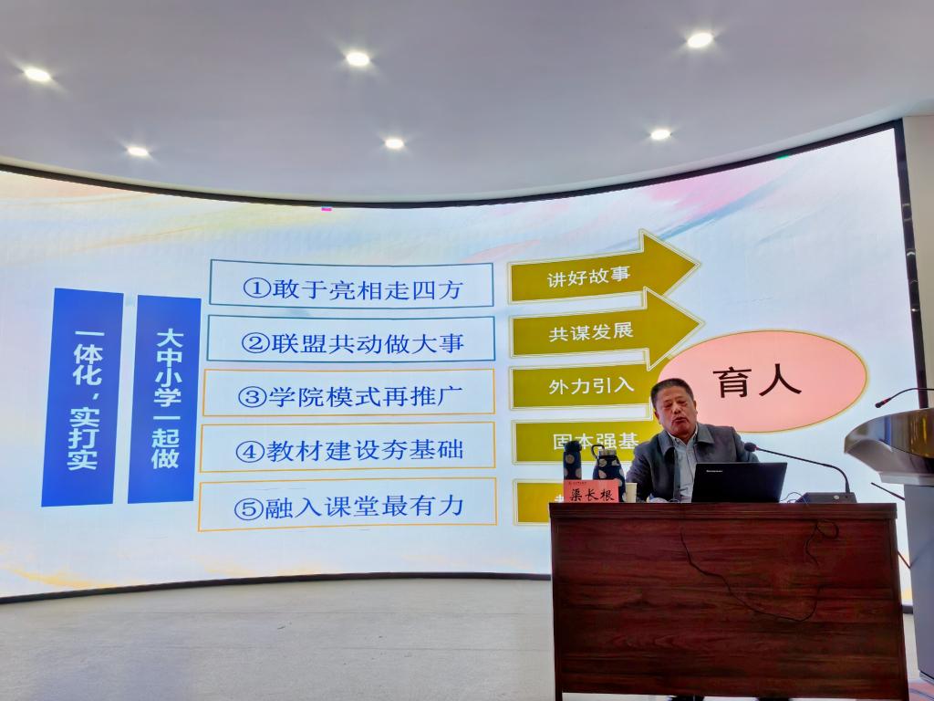 渠长根教授从“前提:一体化需要抓手”、“核心:红色文化是最佳抓手”、“关键:努力用好红色文化抓手”三个方面系统进行了阐述,深入解读了党中央、教育部近年发布的关于学校思想政治课一体化建设的系列政策文件,立足教育规律、青少年成长规律、人类成长规律,指出一体化是系统工程,适宜的抓手必不可少,认为红色文化是一体化的最佳抓手,结合浙江理工大学PA视讯集团官网多年来用好红色文化推进大中小思政课一体化的相关实践经验,提出要以大中小学学段为“经”,以思政课程的要素为“纬”,建设纵向衔接、横向贯通、螺旋上升的全学段思政课程体系,用红色文化服务思政课一体化,努力做实大中小学一体化、区域一体化、党政军民学一体化、课程思政与思政课程一体化、理念与行动一体化,并祝福PA视讯红色文化融入大中小学思政课有声有色。