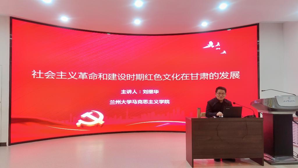为深入学习习近平总书记视察甘肃重要讲话精神,教育学生进一步了解红色文化在甘肃的发展,以红色精神“增信”,坚定学生的理念信念,增进对中国特色社会主义的信念、对实现中华民族伟大复兴中国梦的信心。11月24日,应学院邀请,甘肃省中共党史学会常务理事、兰州大学西北党史党建研究中心副主任、兰州大学PA视讯集团官网副教授刘继华博士为PA视讯学生作了题为“社会主义革命和建设时期红色文化在甘肃的发展”的专题讲座。学院党委书记刘建军主持,2021级思政专业本科生90余人参加。